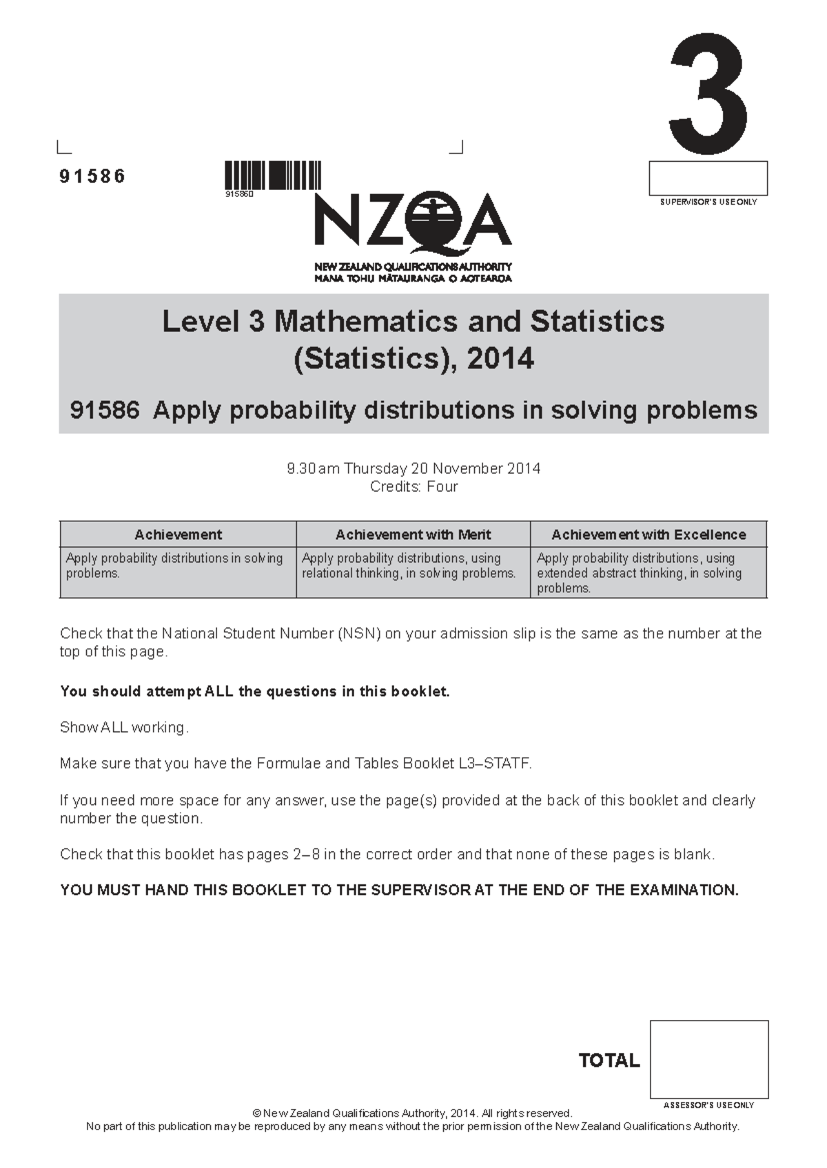 NCEA Level 3 Mathematics & Statistics 91586 Past Exam Paper 2014 - Studocu