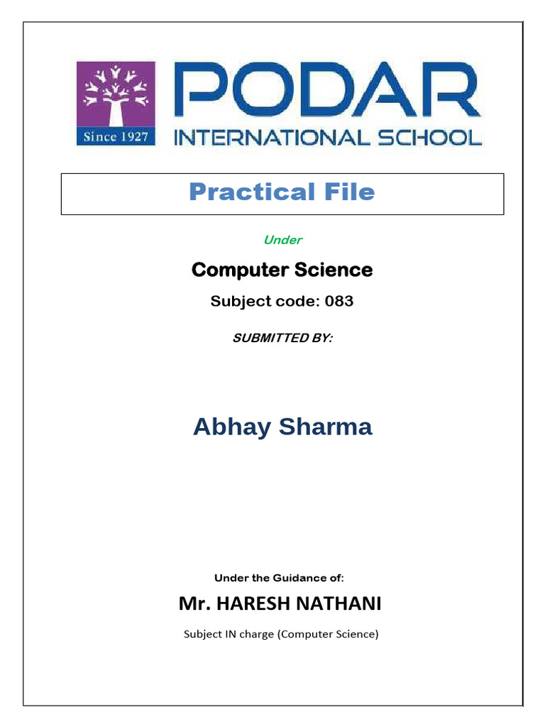 Computer Science Practical File Cover | PDF