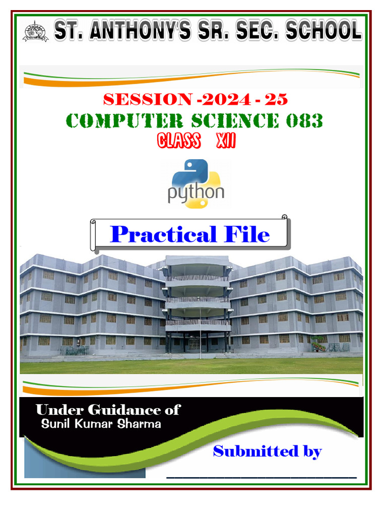 Based on this image's title: “PRACTICAL FILE FRONT PAGE - 12th CS With Python | PDF”