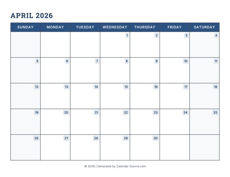 Printable Calendar 2026 April: Plan Your Month with Ease — Master