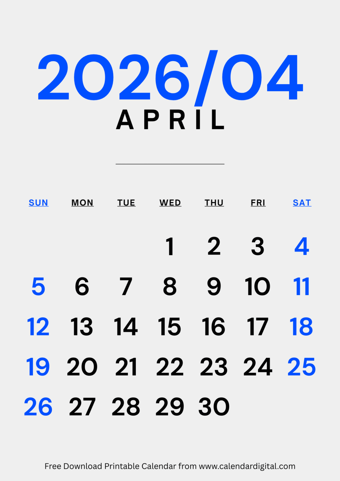 April 2026 Calendar Printable Template - Printable 2026 Calendar