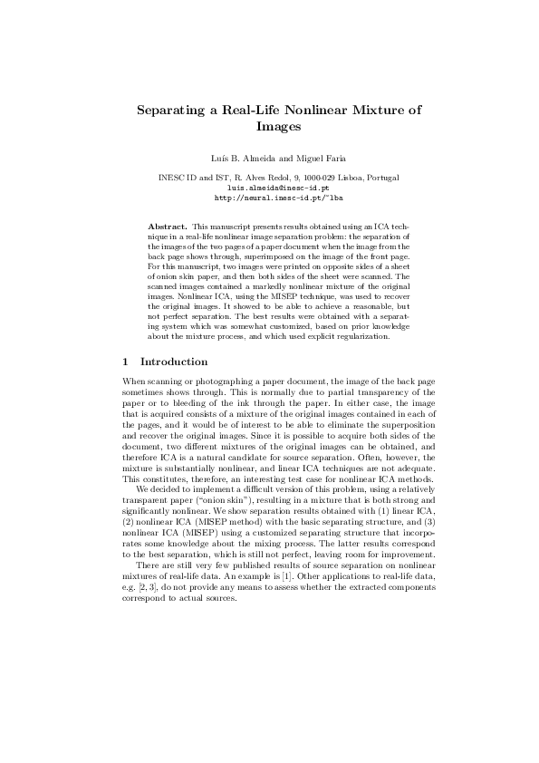(PDF) Separating a Real-Life Nonlinear Mixture of Images