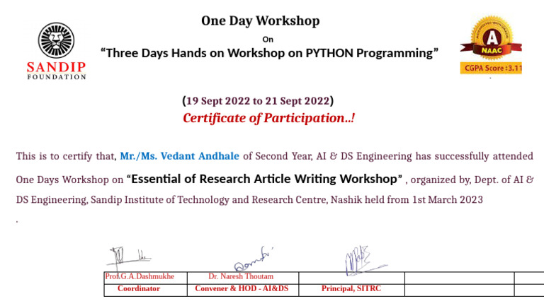 3 Days Workshop in Python at Sri Siddhartha Institute of Technology ...