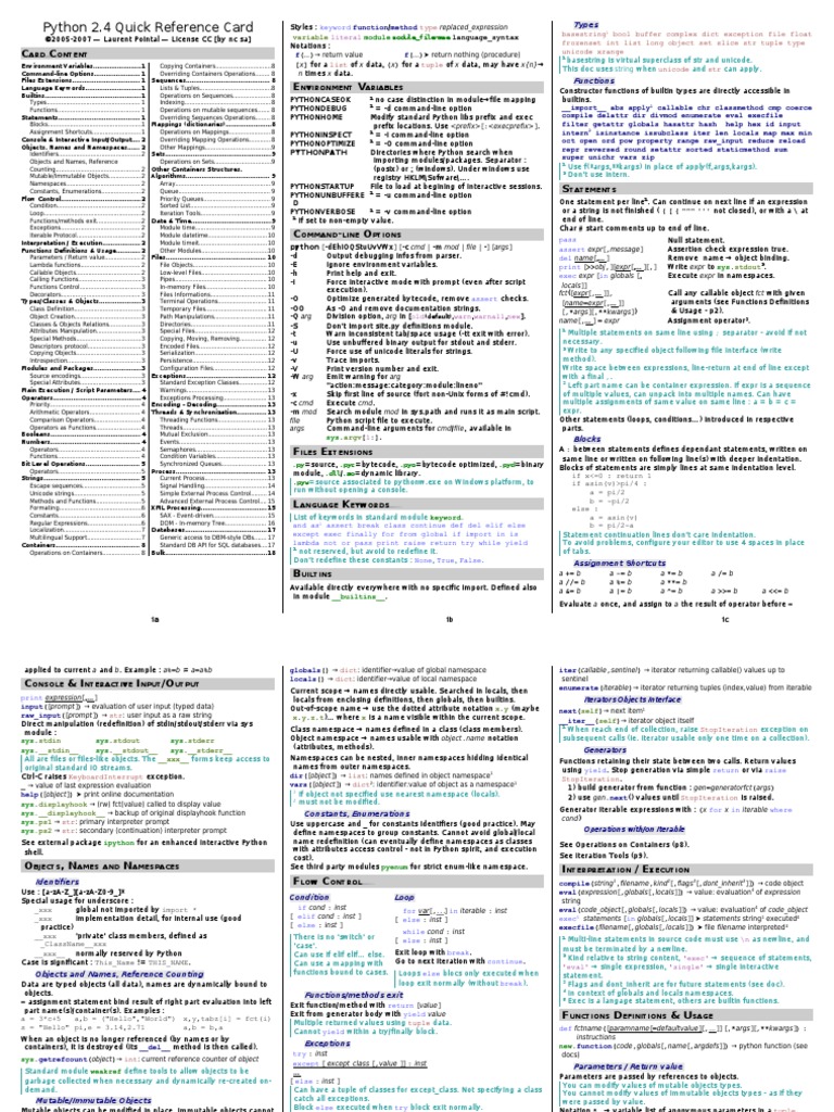 Python 2.4 Quick Reference Card (Letter) (2007) | Control Flow | String ...
