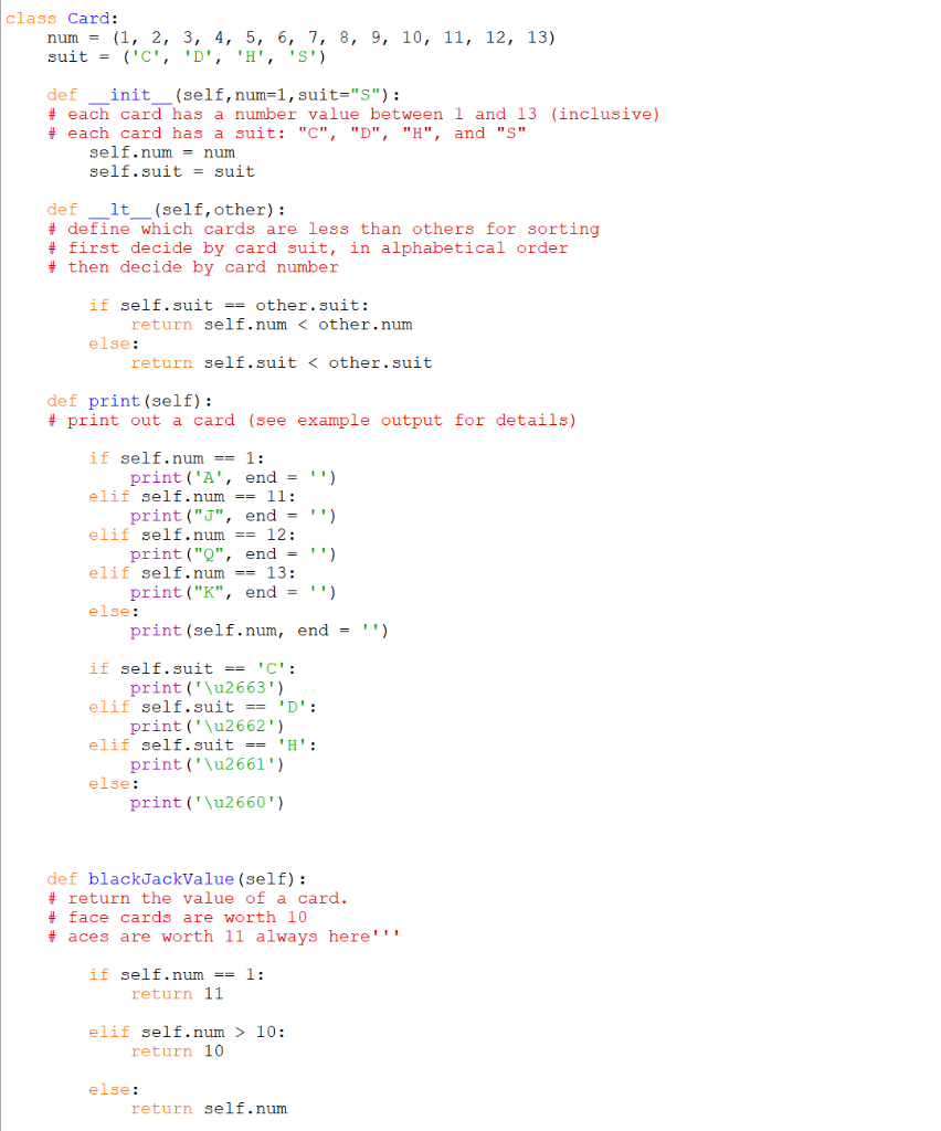Solved need help with class hand. Python class Card: num | Chegg.com