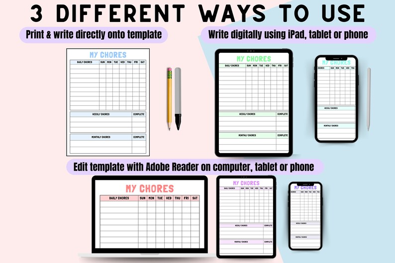 Editable Weekly Chore Chart, Printable Weekly Kids Chore Responsibility ...