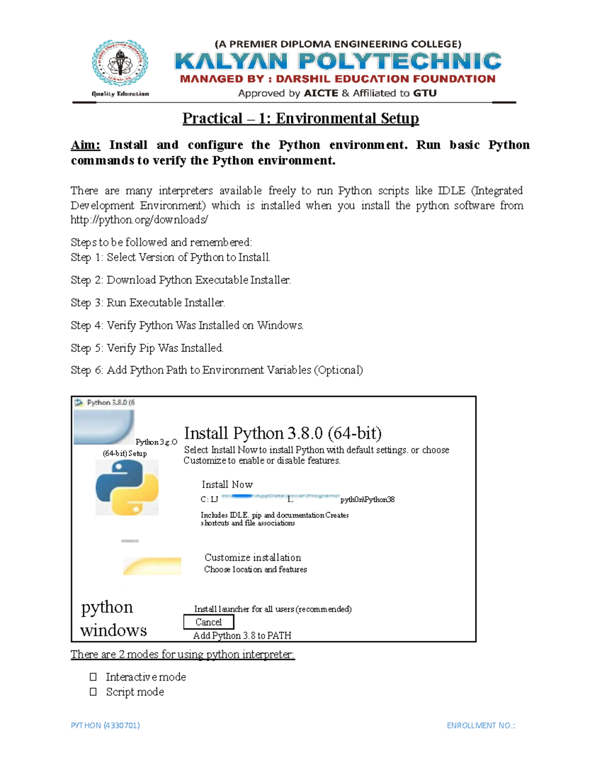 Practical 1: AIM: Installation of Configuration of Python. Along With ...