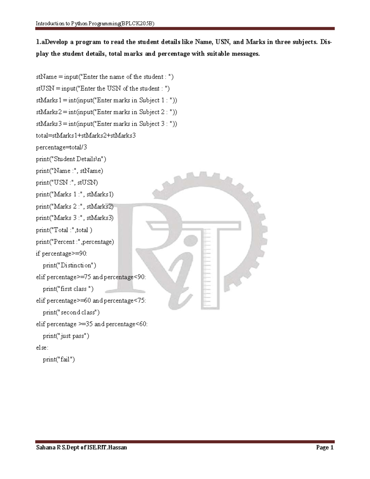 Python 1st Year Lab Manual - 21PLC15b Programming Exercises - Studocu