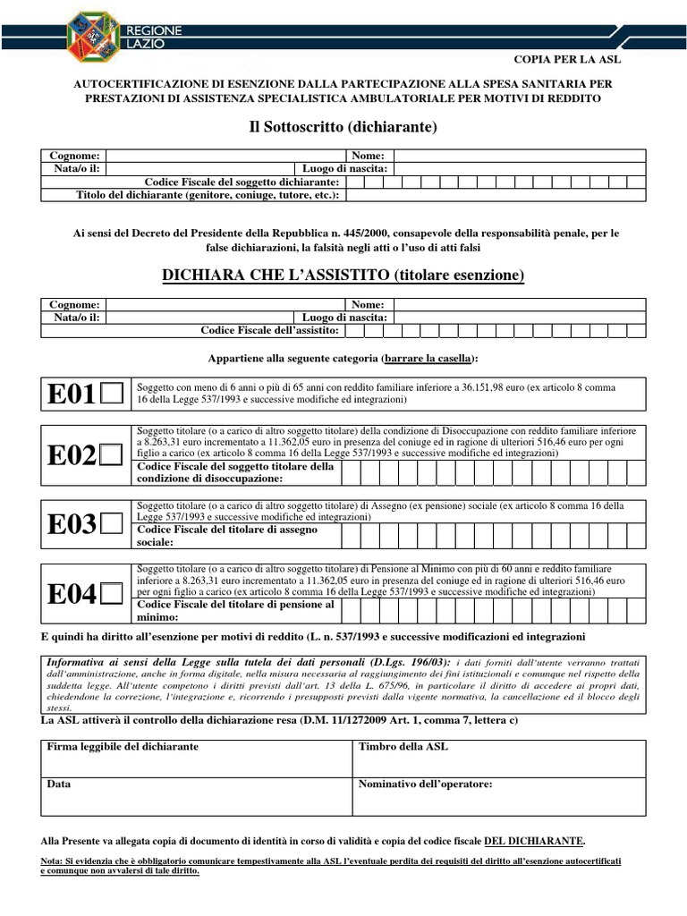 Modulo Autocertificazione Esenzione Ticket | PDF