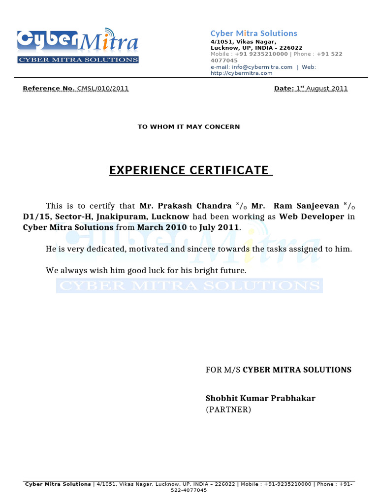 Experience Certificate Generator in HTML, CSS, and JavaScript