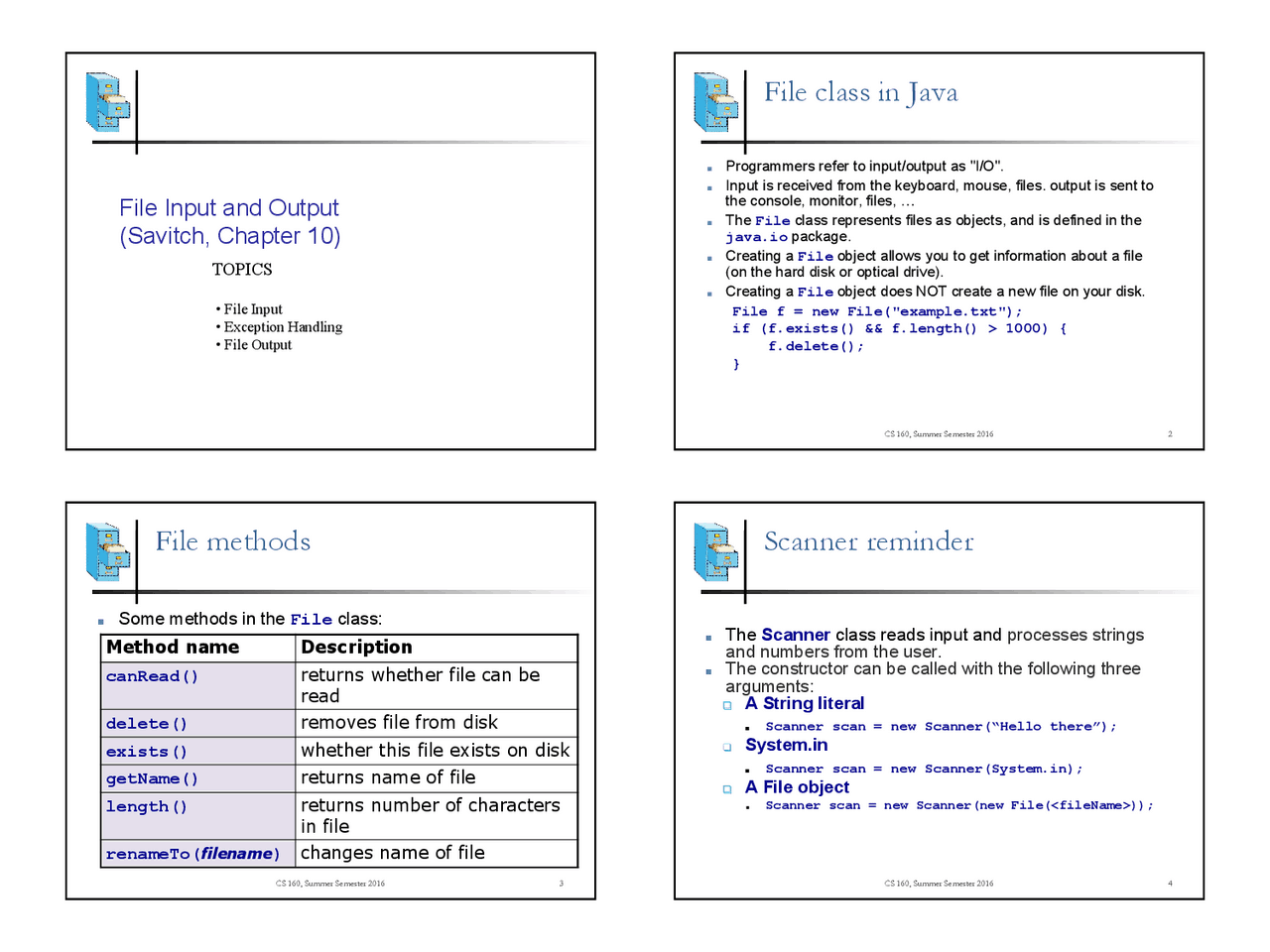 File class in Java File methods Scanner reminder | Exams Java ...