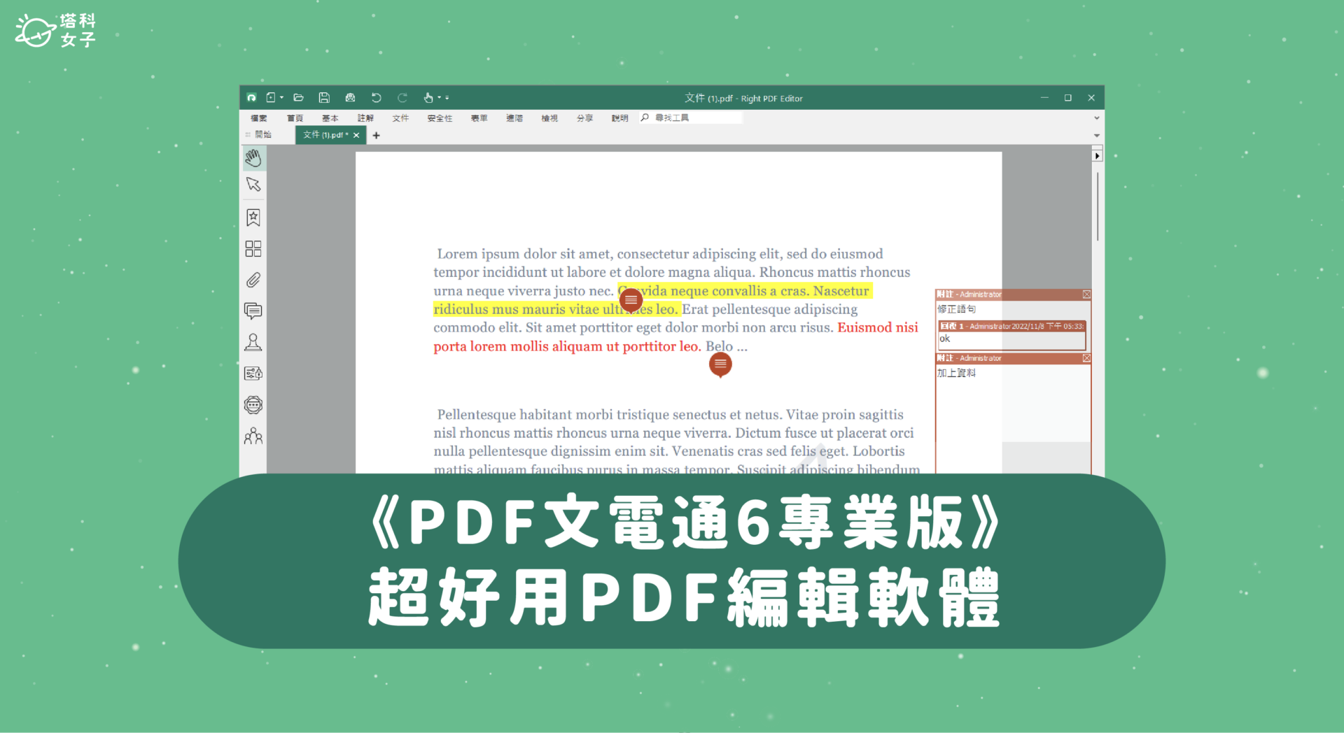 超好用 PDF 編輯軟體《PDF 文電通 6 專業版》提供編輯、轉換、合併多功能 - 塔科女子