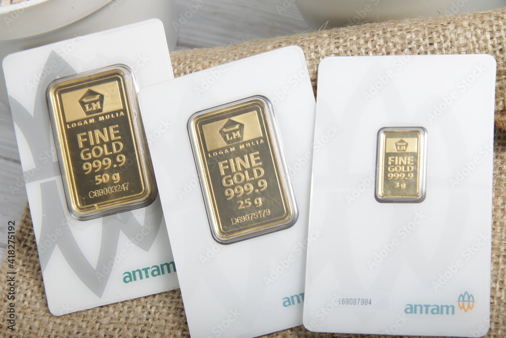 Fine gold bar (goldbar), produced by PT Aneka Tambang (Antam) Indonesia ...