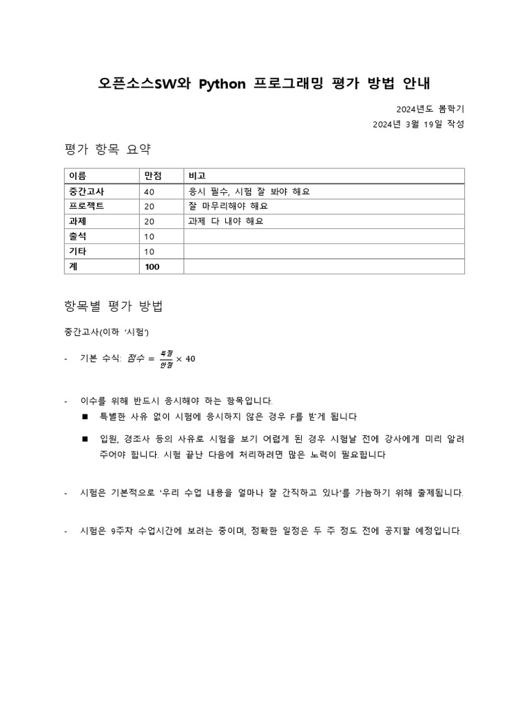 오픈소스SW와 Python 프로그래밍 평가 방법 안내 | PDF
