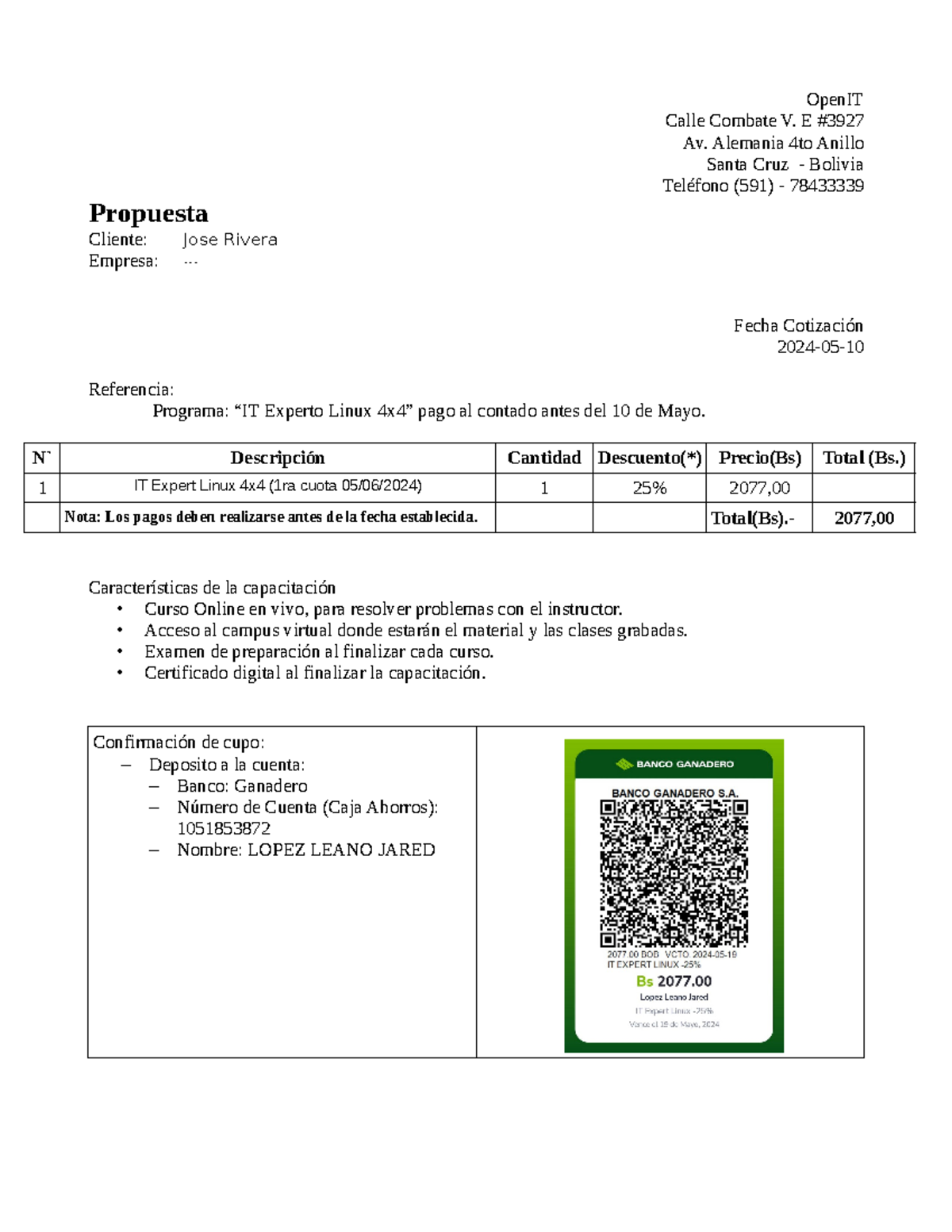 Propuesta ITExpert Linux 4x4 contado 25% Jose Rivera - OpenIT Calle ...
