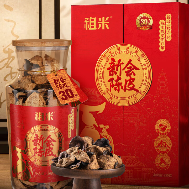 祖米赤韵新会陈皮30年梅江老树陈皮250g玻璃罐大红皮送长辈客户礼物 30年新会陈皮/250g罐/【图片 价格 品牌 报价】-京东