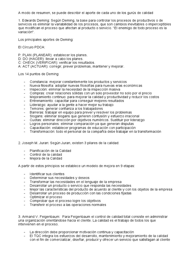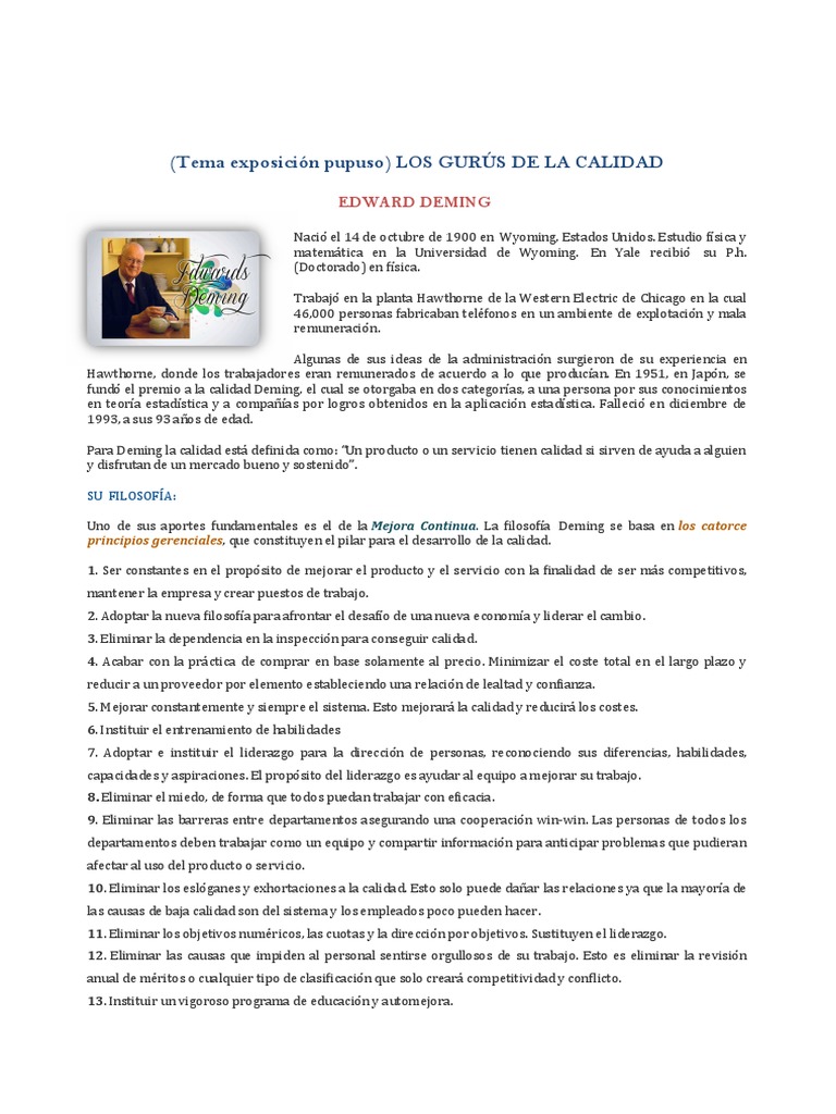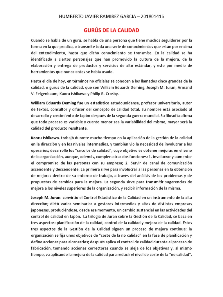Gurús de la Calidad: Influencia y Métodos | PDF | Calidad (comercial ...