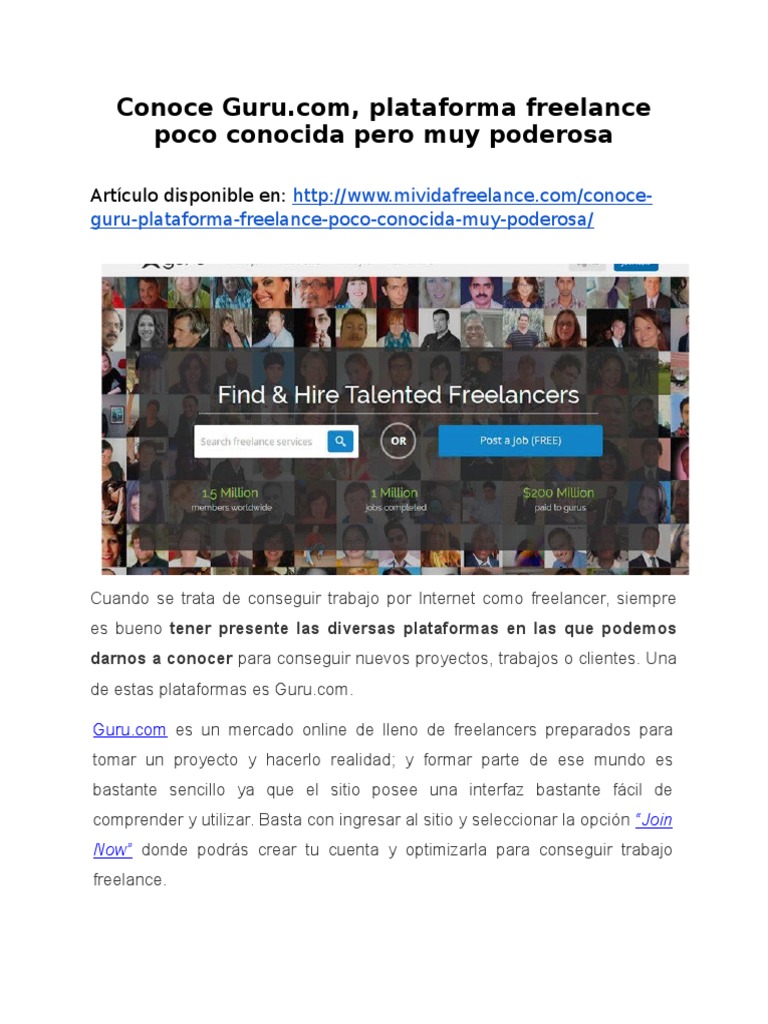 Descubre Guru.com: Potente Plataforma Freelance | PDF | Persona de ...