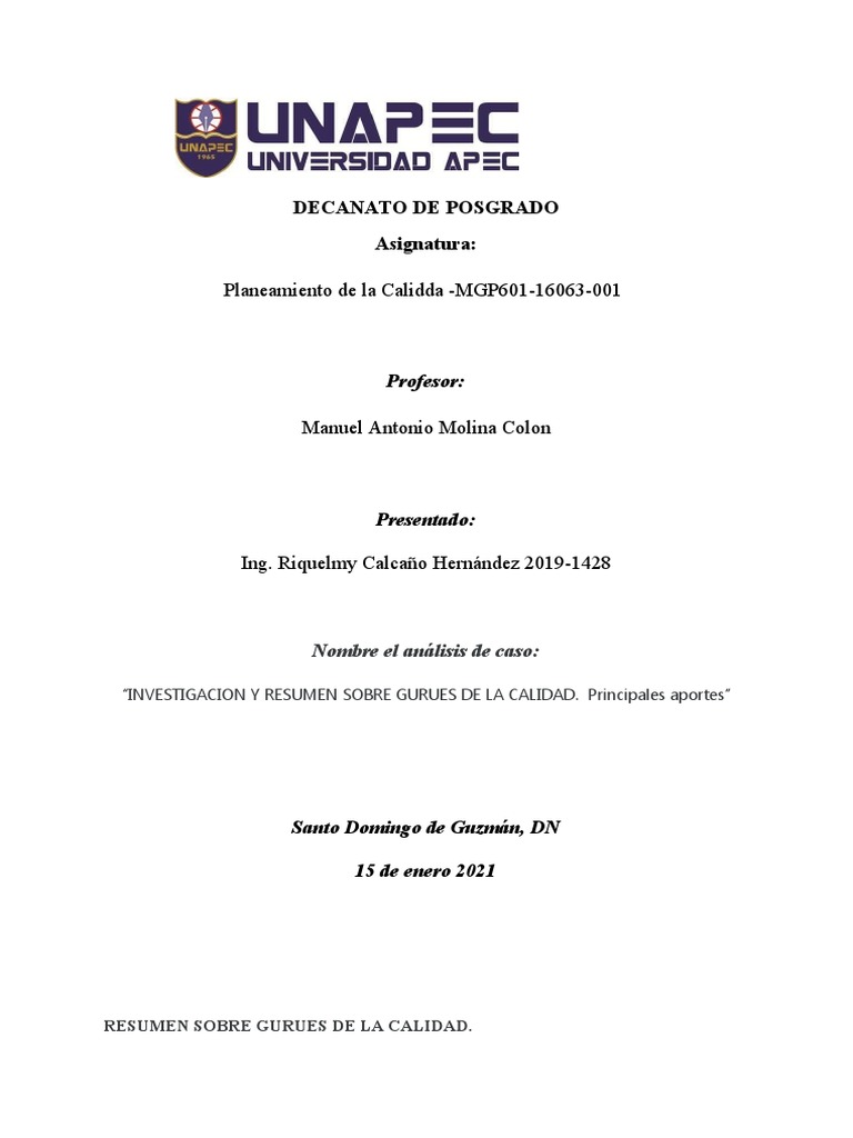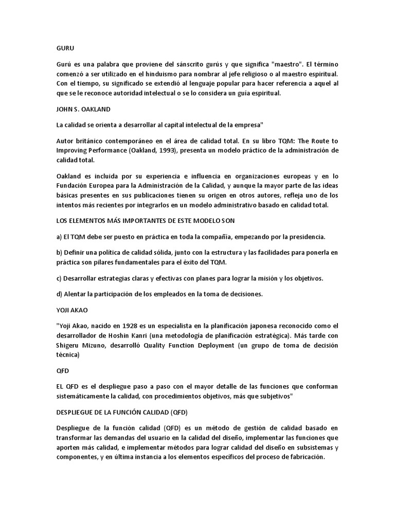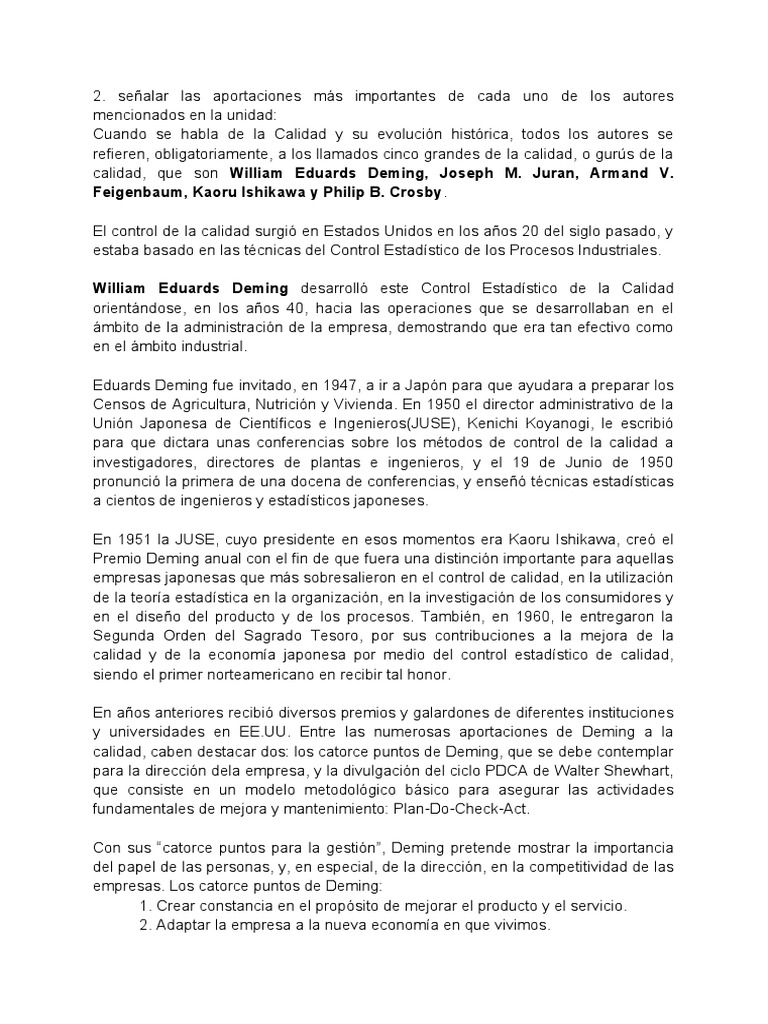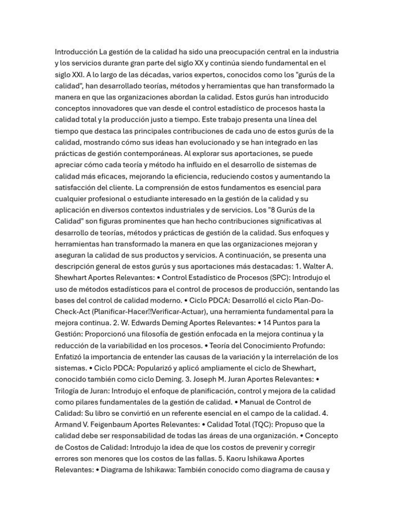 Aportes de los Gurús de la Calidad | PDF | Calidad (comercial ...