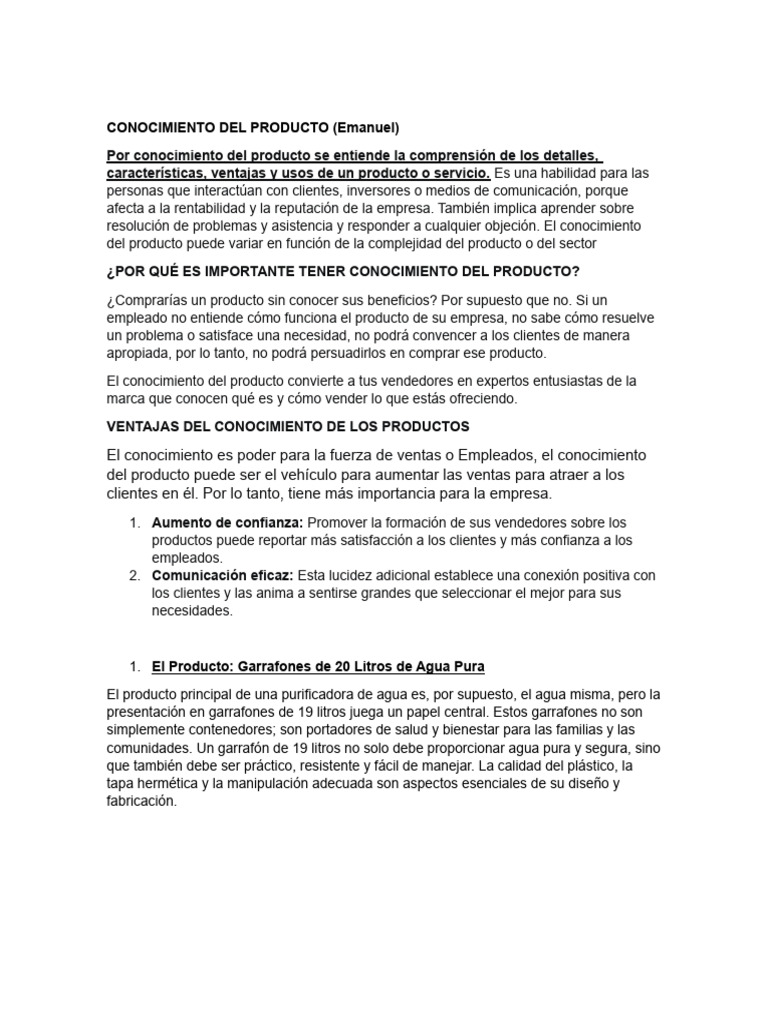 CONOCIMIENTO DEL PRODUCTO | PDF | Agua | Cliente