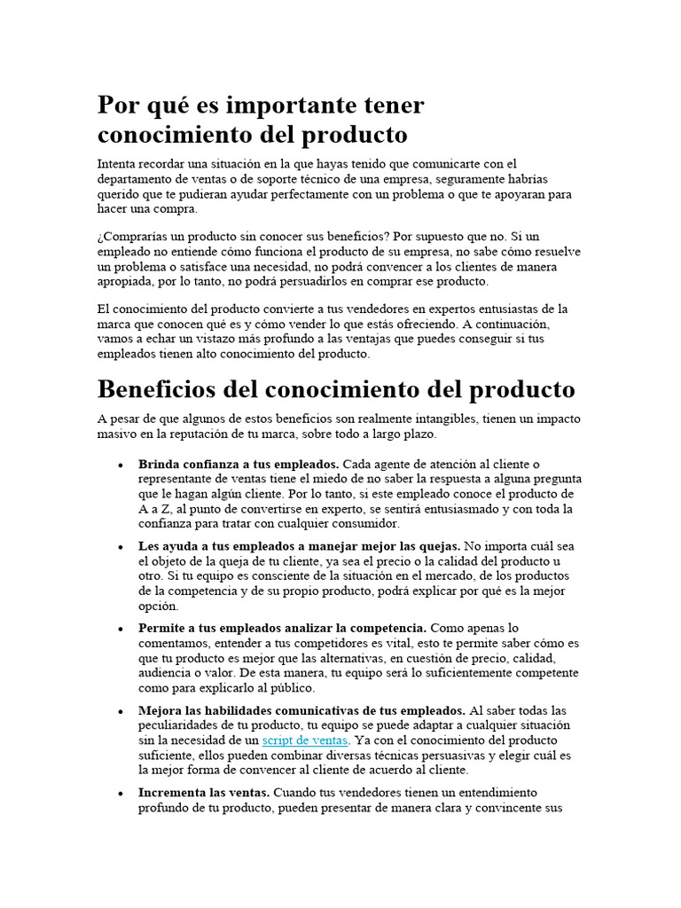 Conocimiento del producto | PDF | Producto (Negocio) | Conocimiento