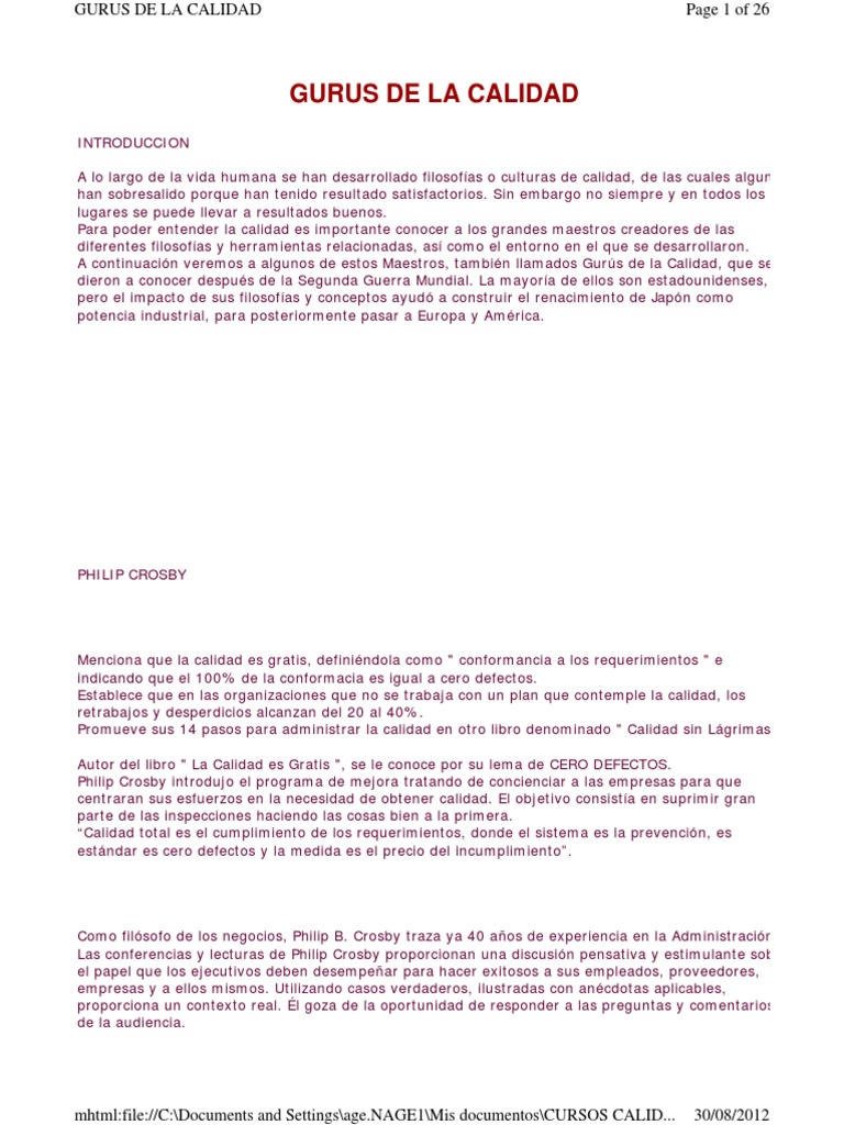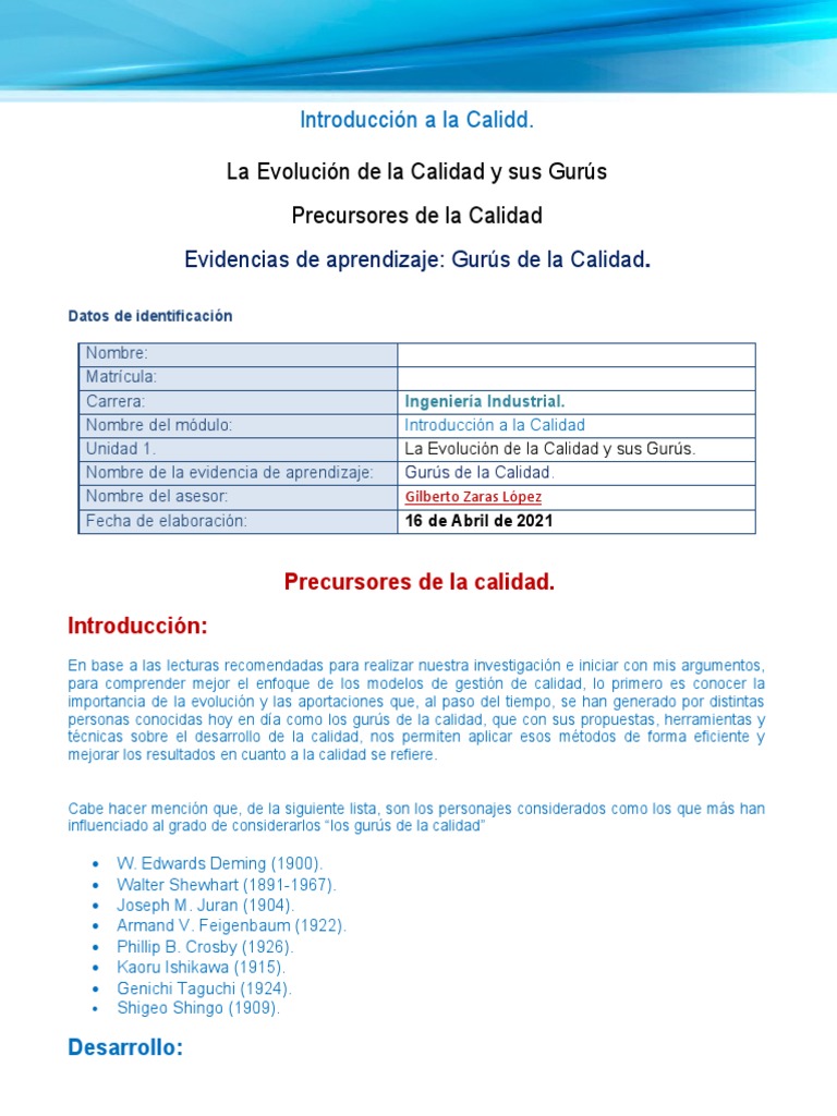 Gurús de la Calidad y su Evolución | PDF | Calidad (comercial ...