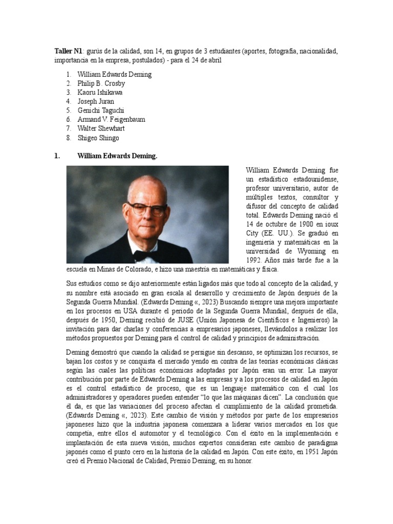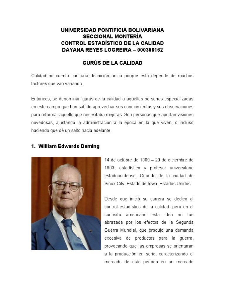 Gurús de Calidad: Contribuciones Clave | PDF | Calidad (comercial ...