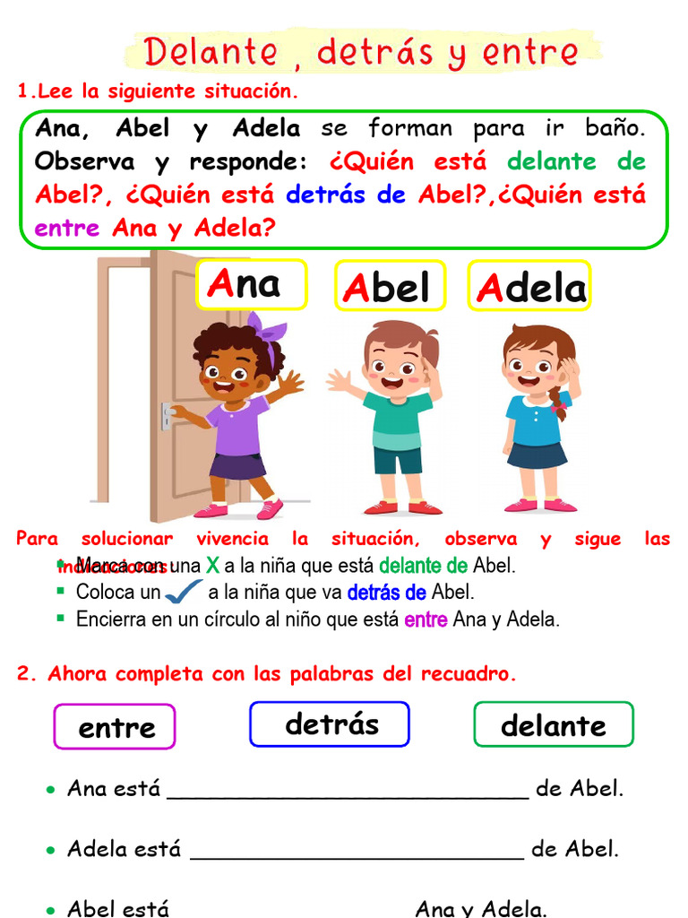 Fichas sobre Delante y Detrás para Niños | PDF | Artes del Lenguaje y ...