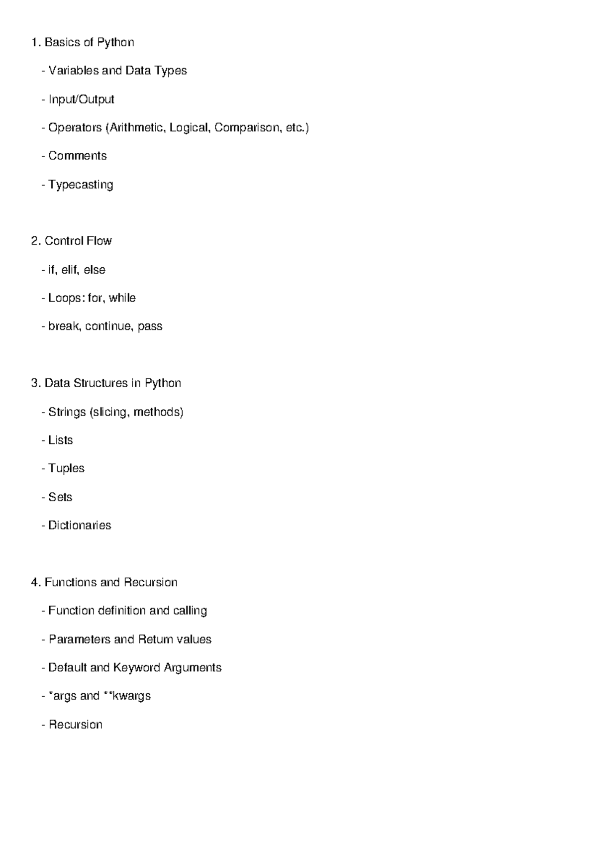 Python Topics Full List: Variables, Control Flow, Data Structures ...