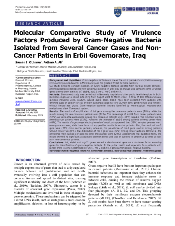 (PDF) Molecular Comparative Study of Virulence Factors Produced by Gram ...