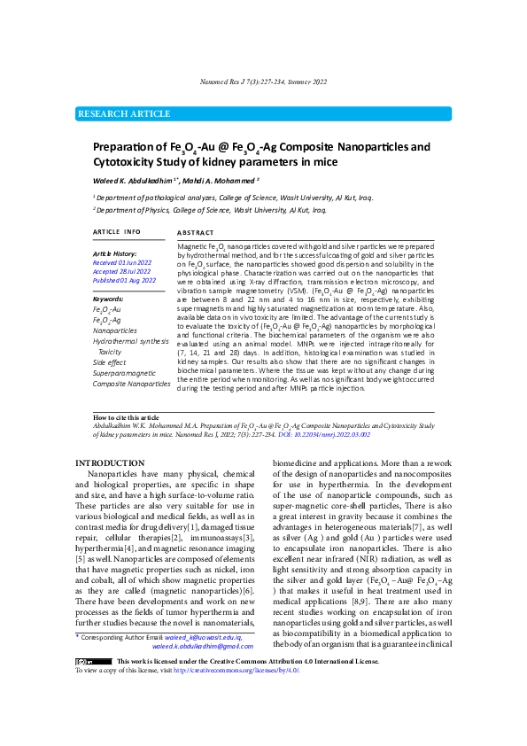 (PDF) Preparation of Fe3O4-Au @ Fe3O4-Ag Composite Nanoparticles and ...