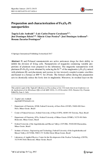 (PDF) Preparation and characterization of Fe3O4-Pt nanoparticles