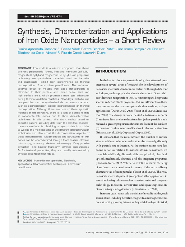 (PDF) Characterization of Fe3O4 Nanoparticles for Applications in ...