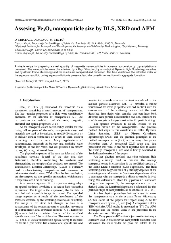 (PDF) Assesing Fe3O4 nanoparticle size by DLS, XRD and AFM