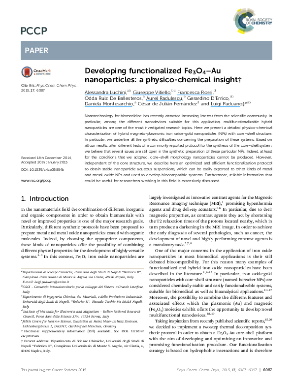 (PDF) Developing Functionalized Fe3O4-Au Nanoparticles: a Physico ...