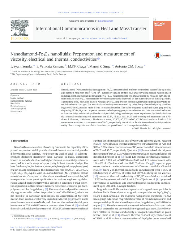 (PDF) Nanodiamond-Fe 3 O 4 nanofluids: Preparation and measurement of ...