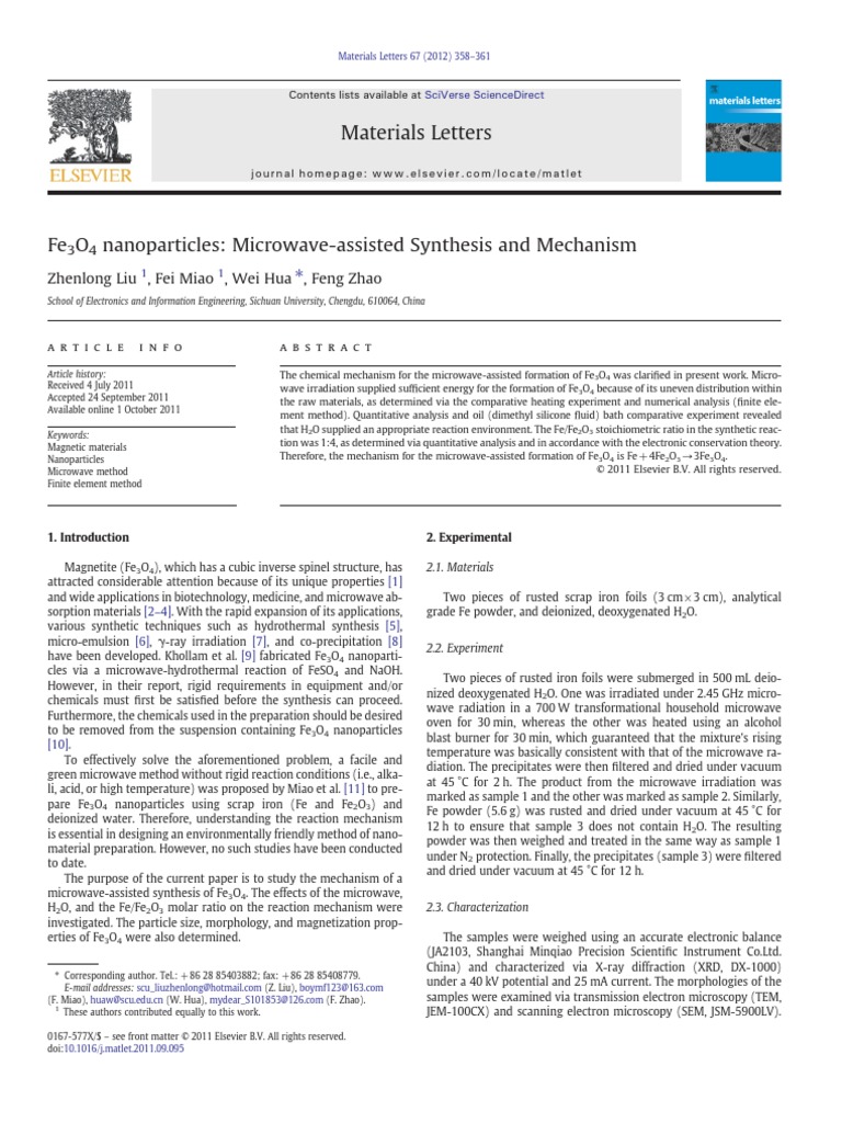 Fe3O4 Nanoparticles - Microwave-Assisted Synthesis and Mechanism | PDF ...