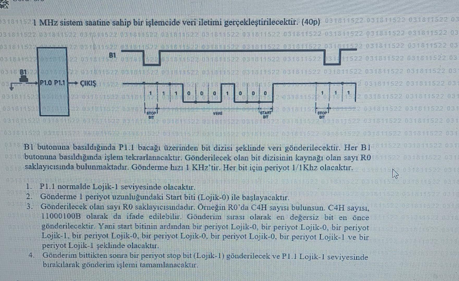 1 MHz sistem saatine sahip bir işlemcide veri iletimi | Chegg.com