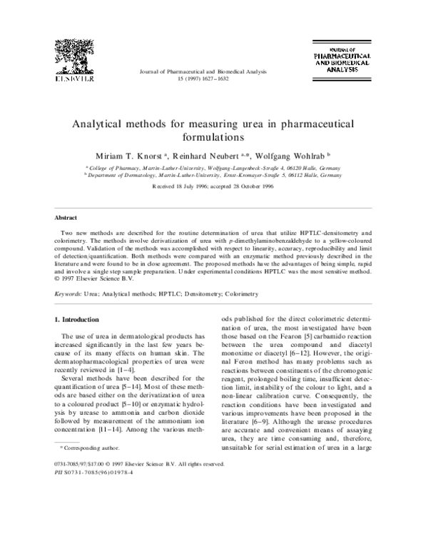 (PDF) Analytical methods for measuring urea in pharmaceutical formulations