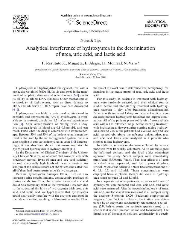 (PDF) Analytical interference of hydroxyurea in the determination of ...