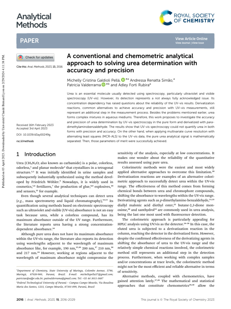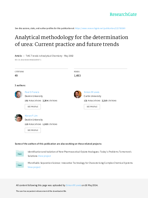 Based on this image's title: “Analytical methodology for the determination of urea: Current practice ...”