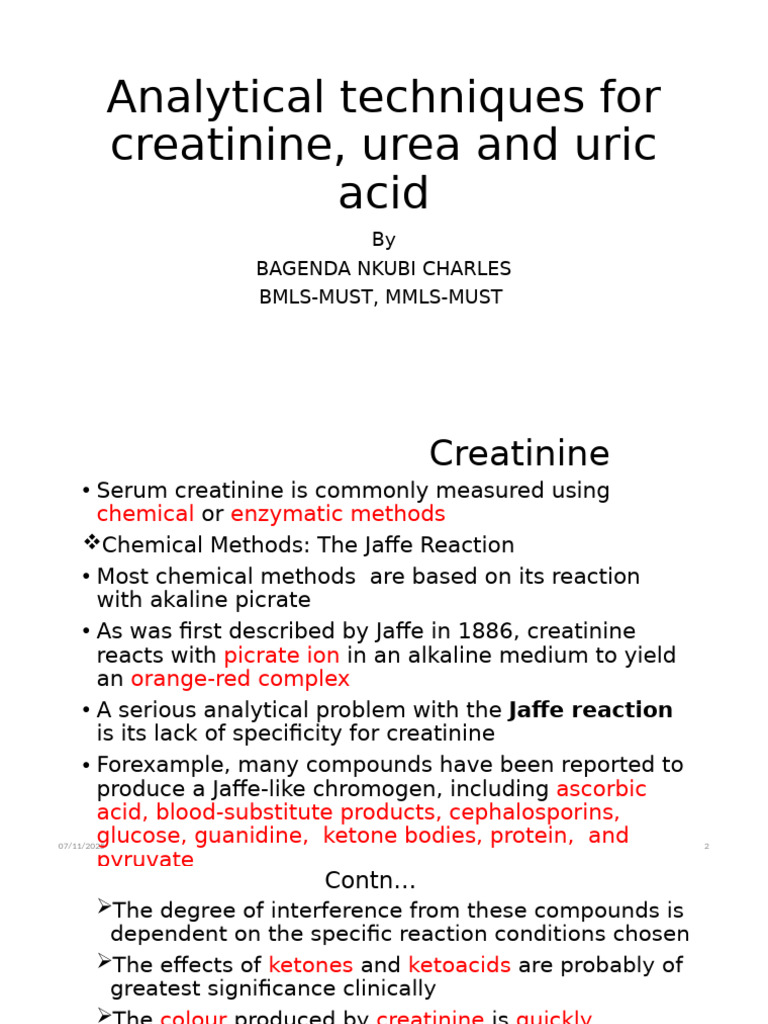 Analytical Methods for Creatinine and Urea | PDF | Creatinine | Kidney