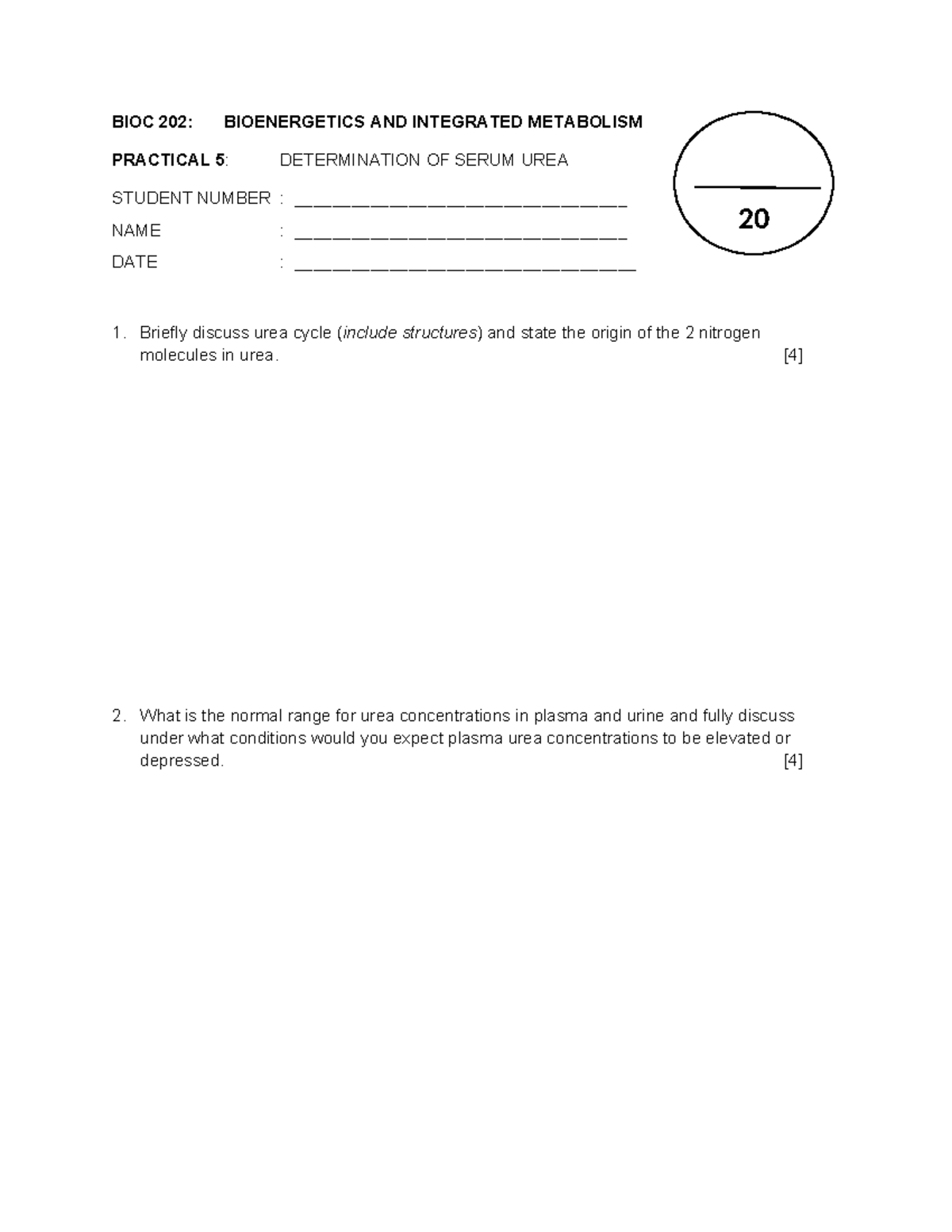 BIOC 202: Practical 5 - Serum Urea Determination & Urea Cycle Analysis ...