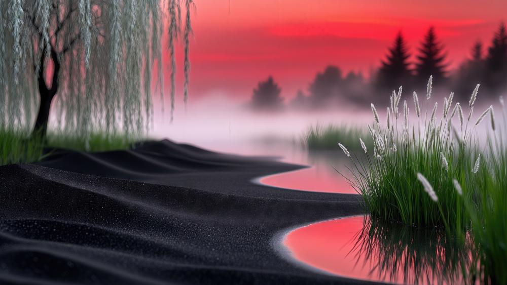Dreamscape of Pink Mist and Black Sands - backiee