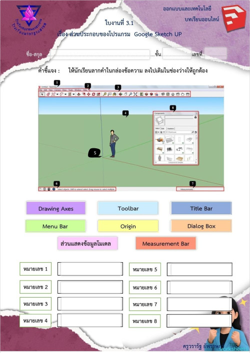 ใบงานที่ 3.1 ส่วนประกอบของโปรแกรม Google Sketch UP ใบงานเชิงโต้ตอบ ...