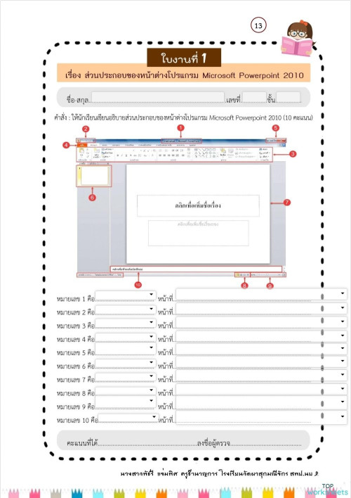 ใบงานที่1 เล่มที่2 ส่วนประกอบของหน้าต่างโปรแกรม Microsoft PowerPoint ...