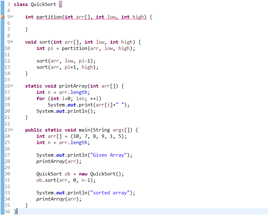 Quicksort Algorithm In Java With Example Program
