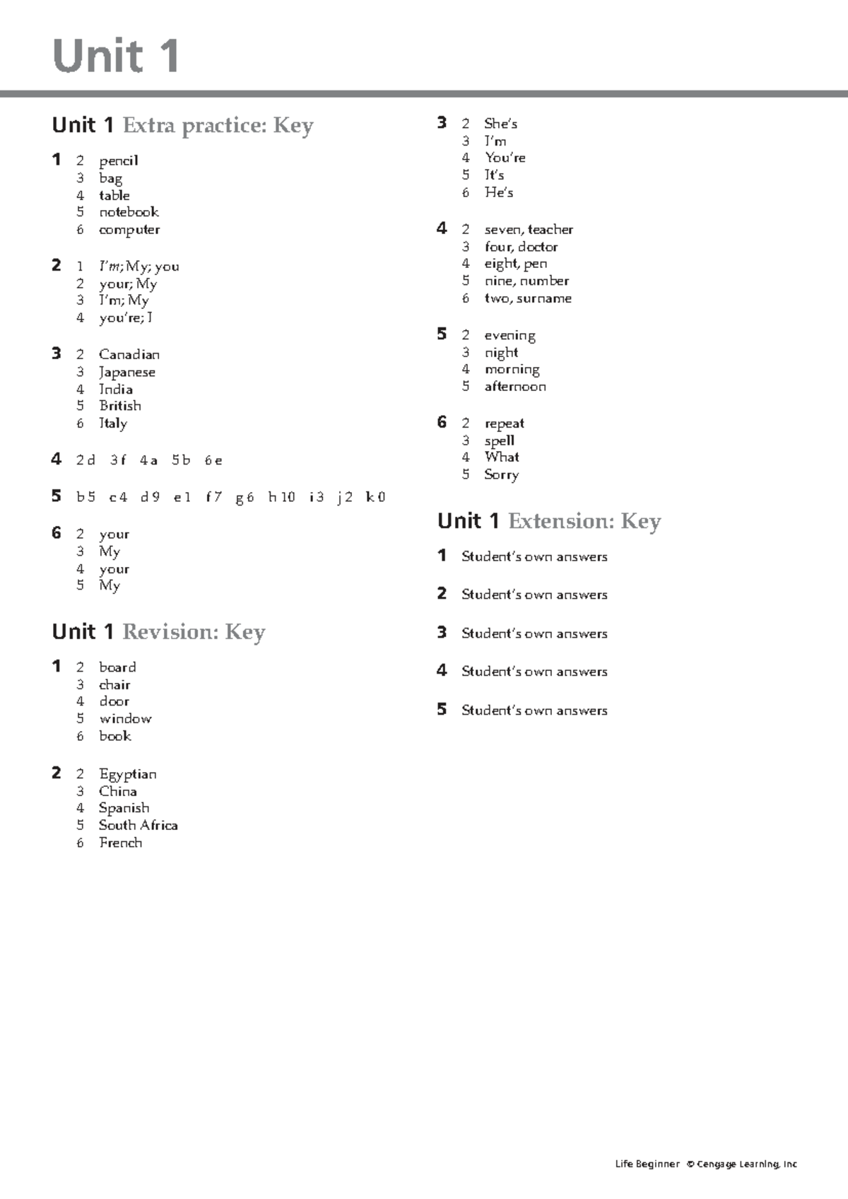 Unit 1 Extra Practice & Revision Answer Key - Beginner Level - Studocu