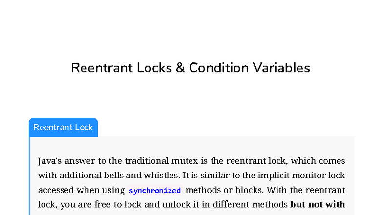 20 Reentrant Locks & Condition Variables Overview - Studocu