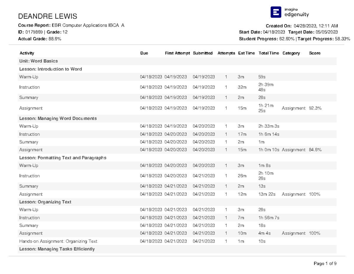 Course Report 04 28 2023 Lewisdeandre EBRComputer Applications Ibcaa ...